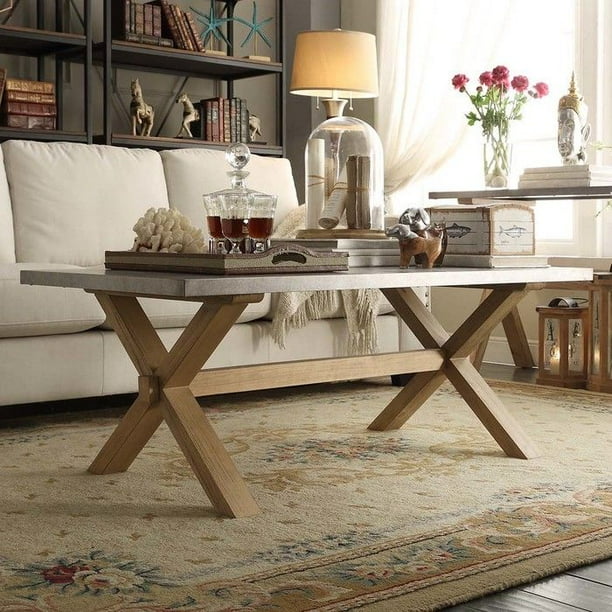 Kinsley Oak Cocktail Table With Zinc Top Walmart Com